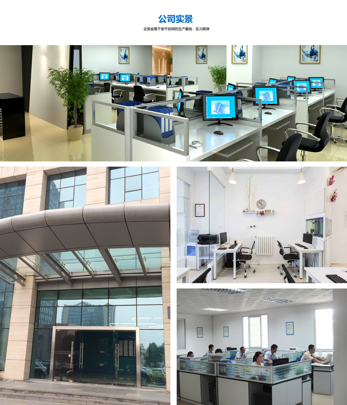 安平縣全昊金屬絲網(wǎng)制品有限公司位于中國著名的“絲網(wǎng)之鄉(xiāng)”河北安平縣。我廠是集拉絲、織網(wǎng)、壓彎、噴塑、浸塑的實力大的絲網(wǎng)生產(chǎn)企業(yè),是致力于石籠網(wǎng)、護欄網(wǎng)以及其他各種絲網(wǎng)制品的生產(chǎn)與研發(fā)廠家。擁有管理完善的組織機構(gòu),進步的生產(chǎn)設(shè)備,技術(shù)過硬的生產(chǎn)工人,技術(shù)力量雄厚。經(jīng)過20多年的發(fā)展,公司已成為絲網(wǎng)行業(yè)的知名企業(yè)。